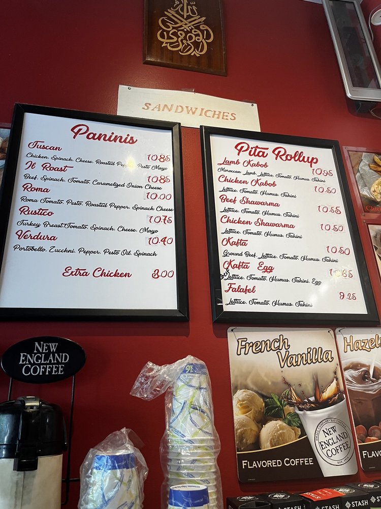 Moroccan lamb, lettuce, tomato, humus, feta, tahini.