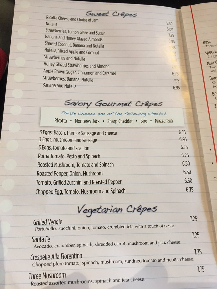 Introducing the menu at Crispy Crêpes Cafe, a charming brunch spot in Boston, offering a wide range of savory gourmet crepes. From classic combinations like eggs, bacon, and cheese to unique options like roasted pepper and mushroom, there's something for every palate. Customers rave about the generous portions, efficient service, and delicious offerings. The cafe also serves Mediterranean plates like falafel and shawarma, catering to a diverse audience. Whether you're a college student looking for value meals or a dessert lover seeking Nutella and strawberry crepes, this place has it all. With its casual ambiance and friendly staff, Crispy Crêpes Cafe is a must-visit for a satisfying meal in the heart of BU campus.